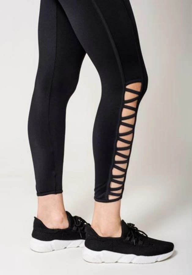 A full length legging with a fun CRISSCROSSING straps on the side leg. Fabric: 88% Nylon / 12% Elastan