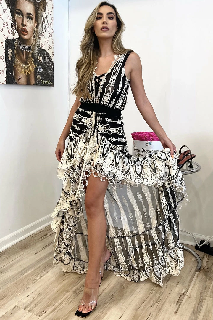 Long, lace, maxi, sleeveless dress by Antica Sartoria by Giacomo Cinque.