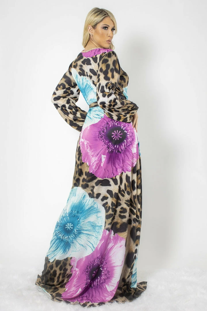 Baccio Couture Summer Lovin’ Baccio Mimi Long Sleeve Leopard Maxi Dress