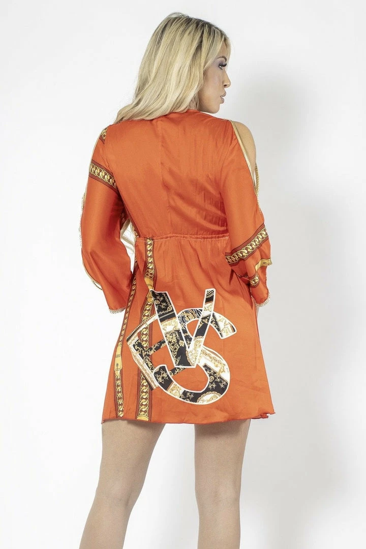 Baccio Couture Summer Lovin’ Baccio Silk Long Sleeve Chain Print Mini Dress