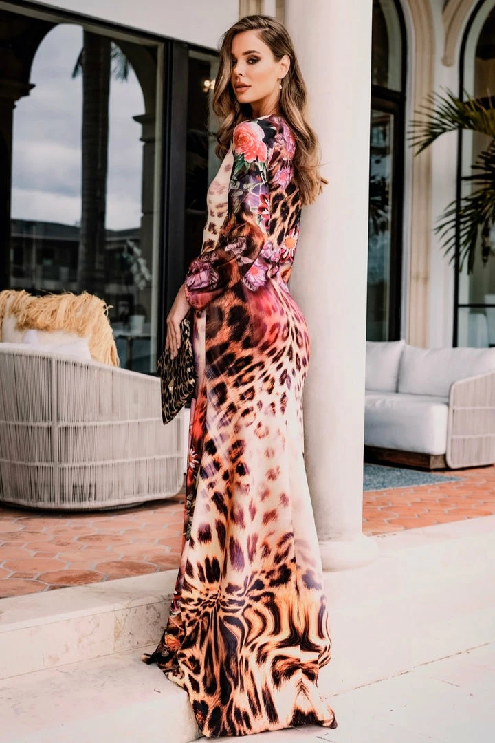 ANGELINA LONG SLEEVE SCUBA SILK GOWN DRESS
