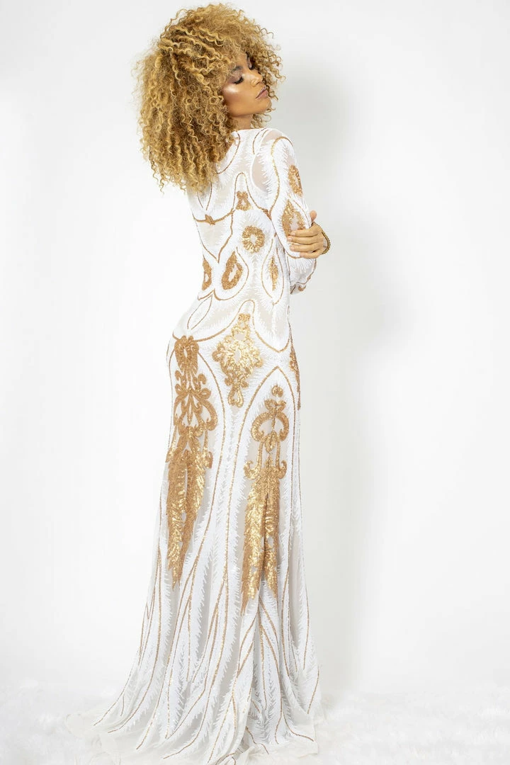 Baccio Couture The Event Shop Baccio Maesa Long Sleeve Sequin Crystal Gown