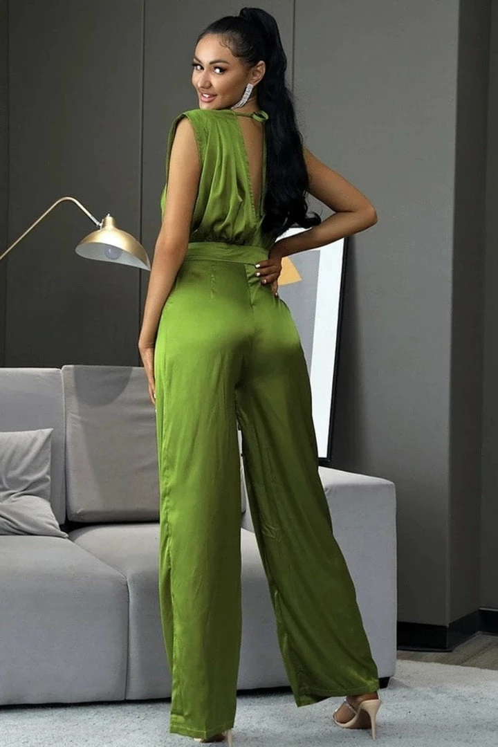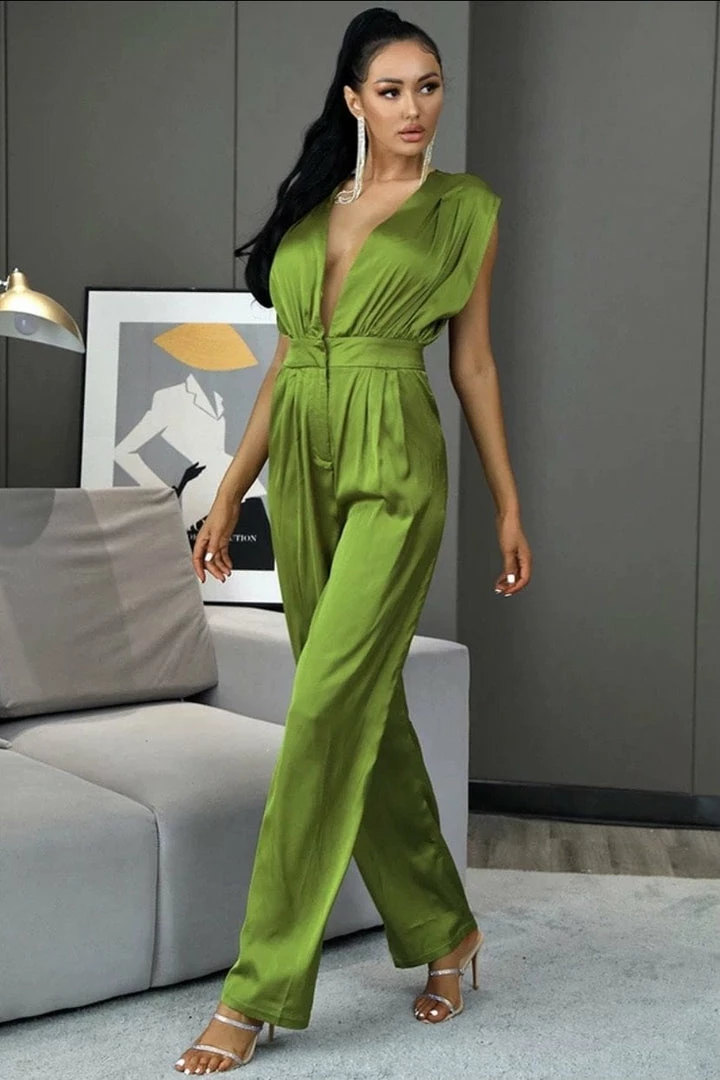 This jumpsuit is sure to have you feeling luxurious dolls! Featuring a silky fabric with a deep v-neck design and a wide-leg fit. Team this with heels and a clutch bag for that special occasion.