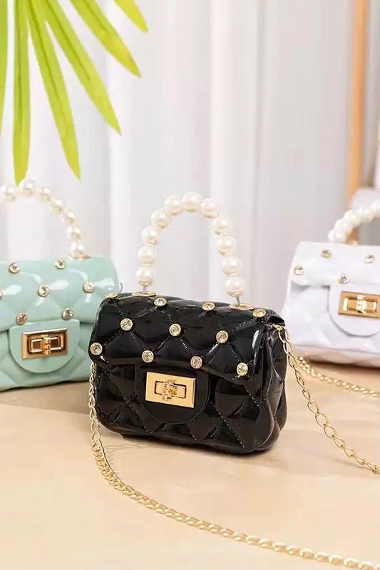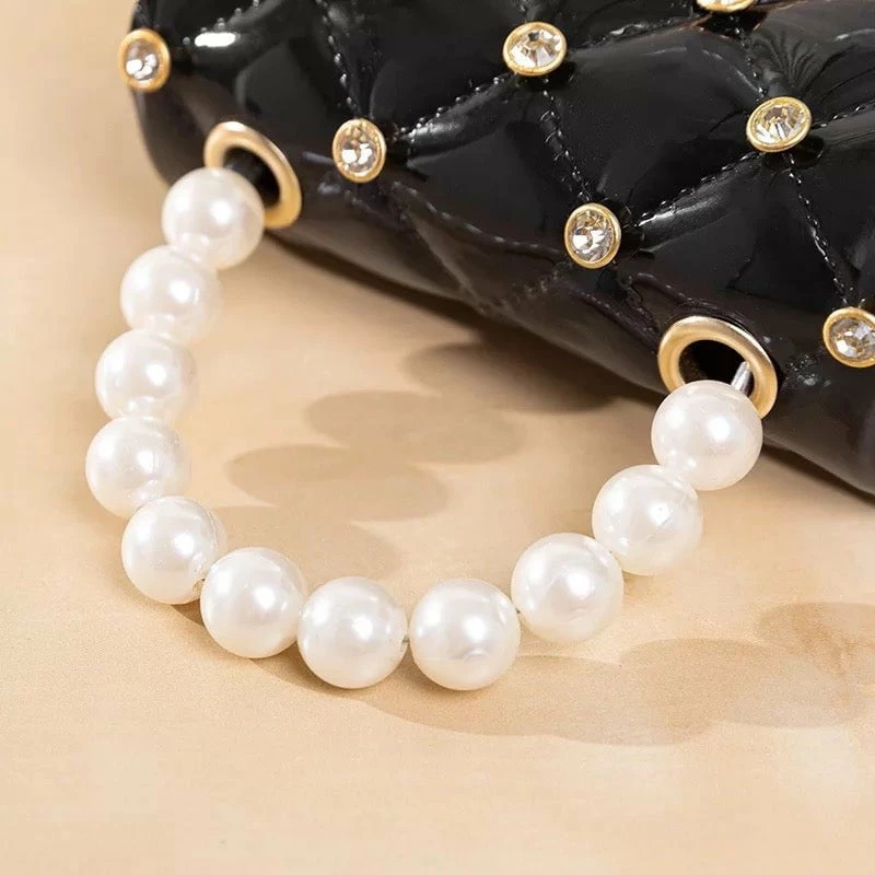This purse is mini but mighty for your next night out! Featuring a micro sized mini bag with a pearl handle, gold chain long strap, and rhinestones dazzled throughout. Add it to any outfit for the perfect finish at your next girls night out.