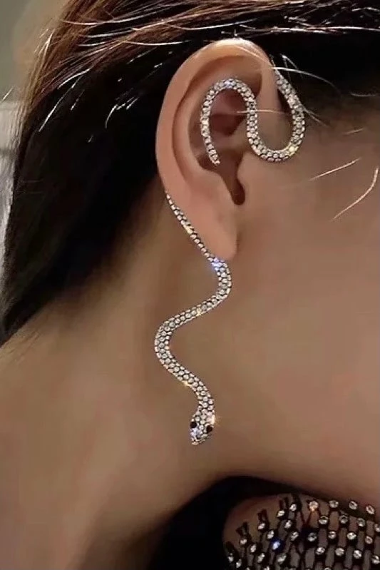 Amplify your outfits with this adorable ear cuff addition. Featuring a rhinestone crystal snake that wraps around your ear as a cuff. No earring hole is necessary as it wraps around the ear. Add to any of your cocktail outfits to dress up your look for a night out!