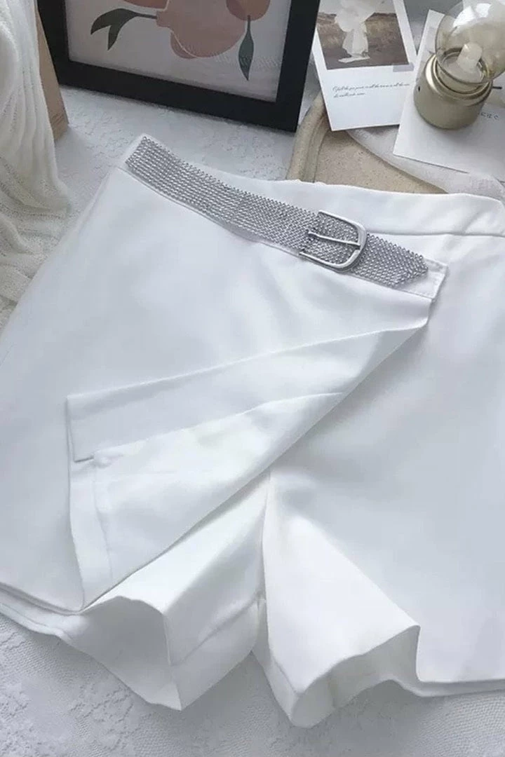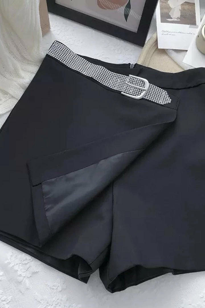 These shorts are perfect for your next night out! With a diamond belt, wrap front, high waited fit, and zip up back. Pair with heels for a super sexy look!