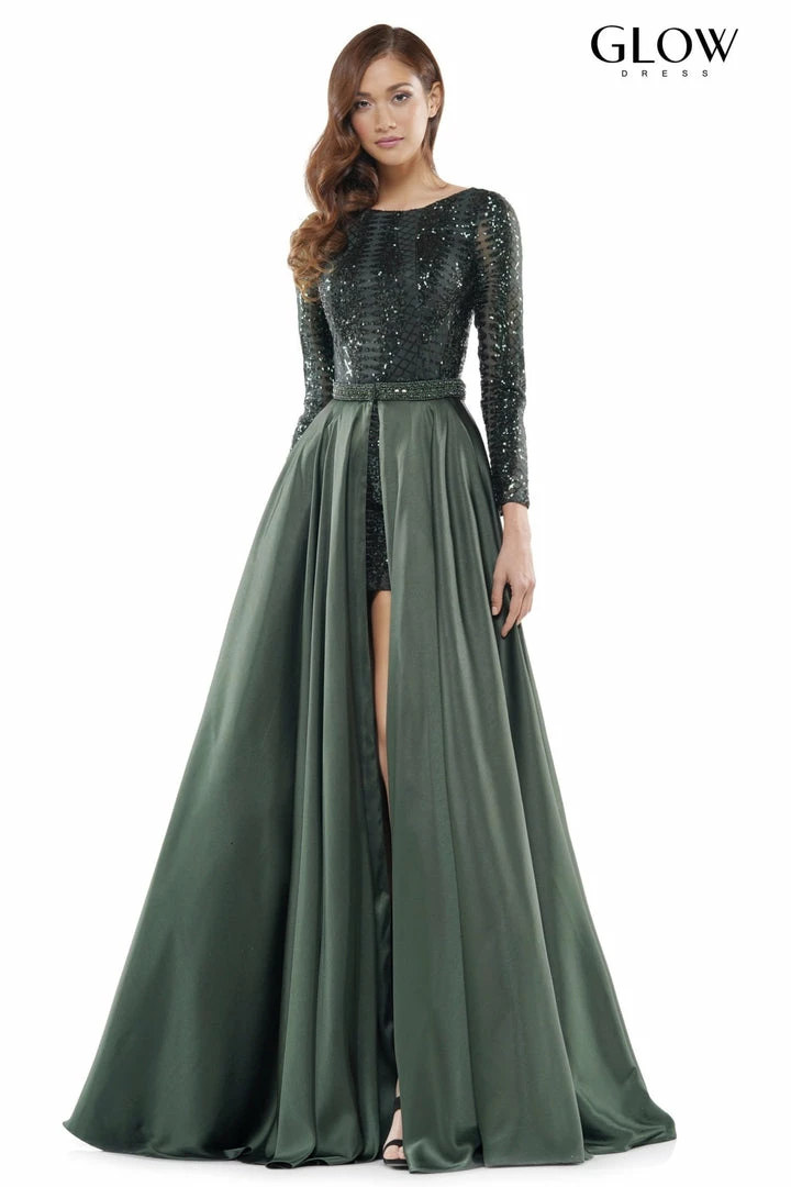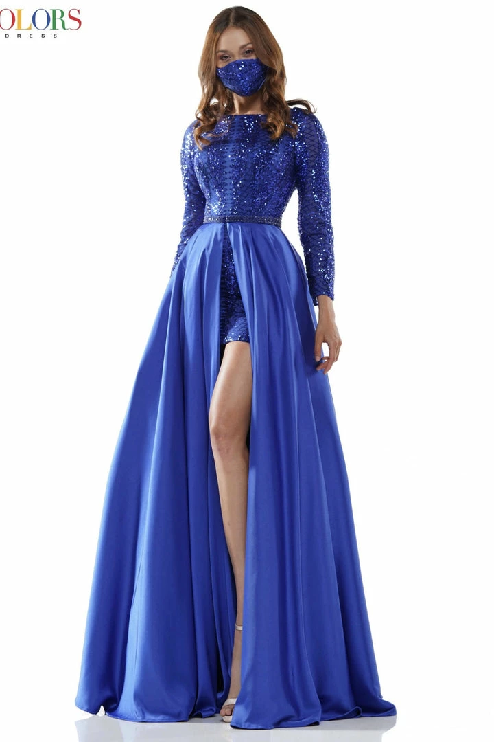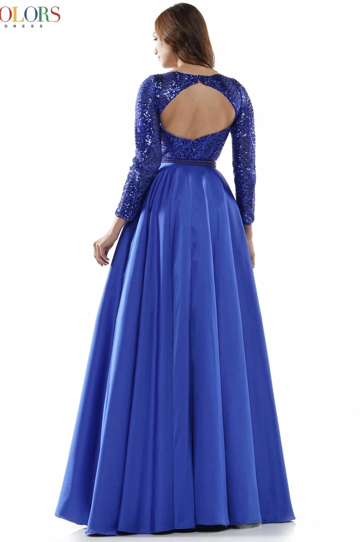 Look absolutely gorgeous in Colors Dress G956 Dress. This divine piece features a a-line silhouette and glittering accents. The long sleeve bodice has a high neckline neckline and a natural waist.