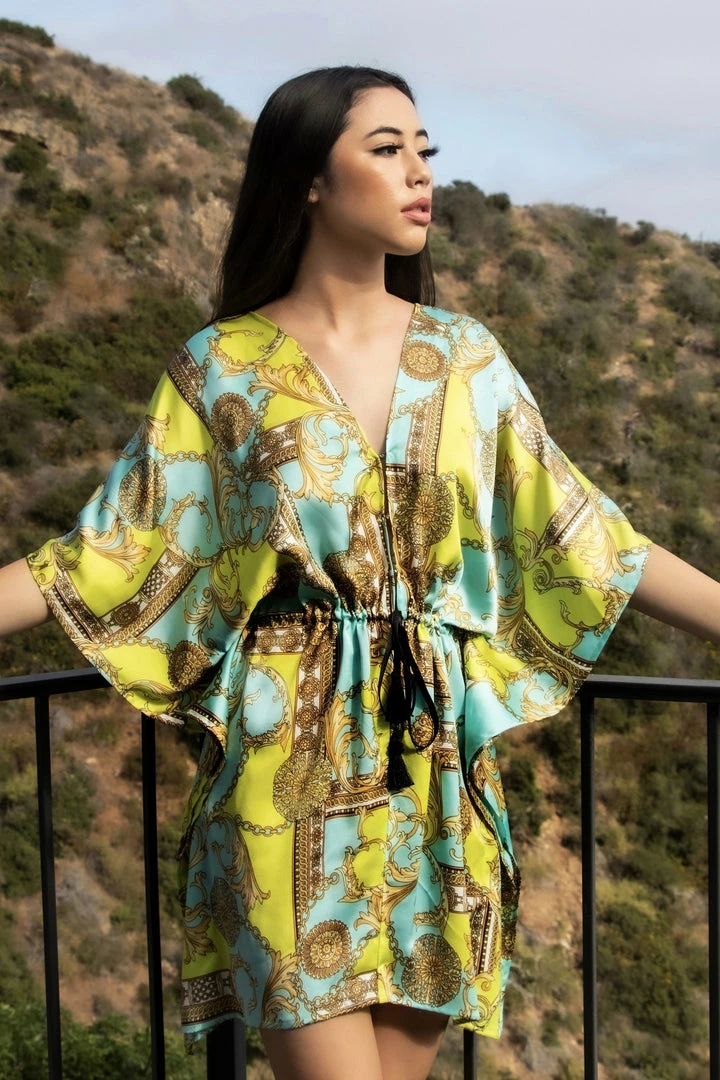 A tasteful addition to your summer repertoire, this cover up guarantees a polished summer look on the weekends. The vibrant Barocco print adds, a touch of exotic to this design, perfect for layering over your favorite swimsuit for poolside.
