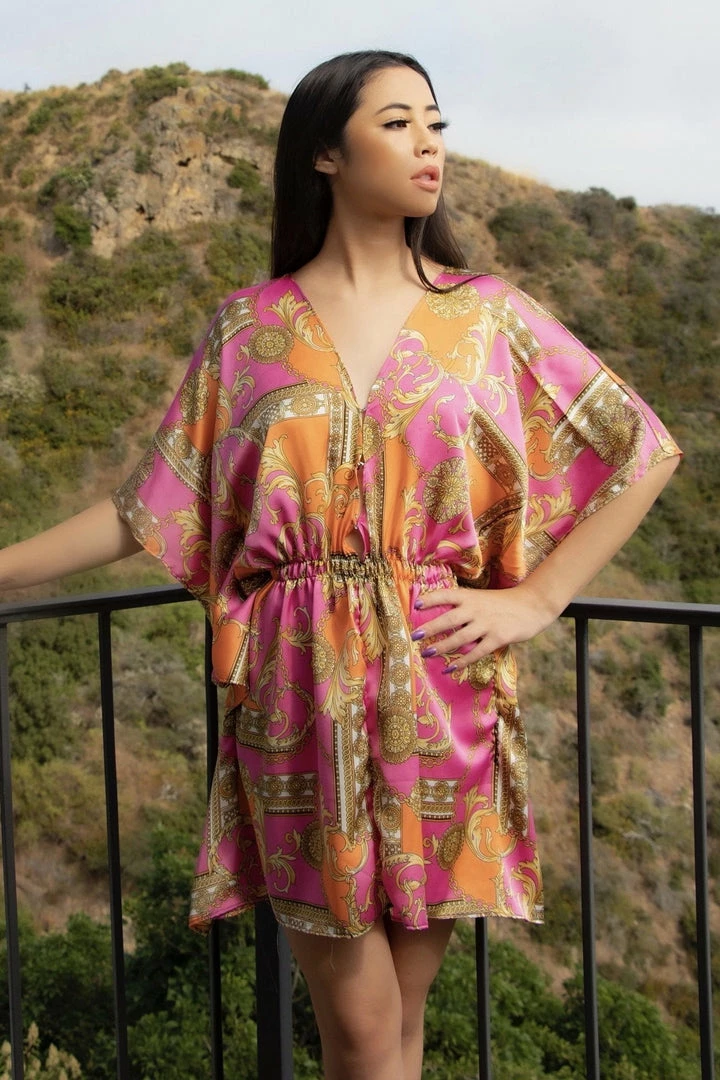 A tasteful addition to your summer repertoire, this cover up guarantees a polished summer look on the weekends. The vibrant Barocco print adds, a touch of exotic to this design, perfect for layering over your favorite swimsuit for poolside.