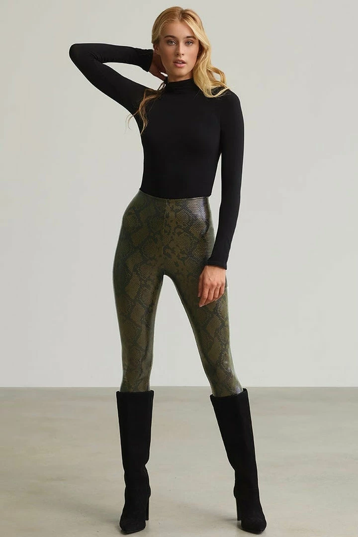 Commando’s bestselling faux leather leggings get updated with on-trend animal print. Made with a four-way stretch animal-printed faux leather and featuring commando’s signature smoothing waistband.