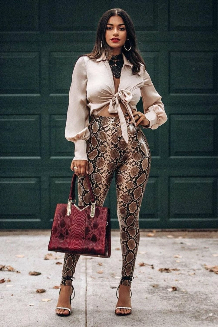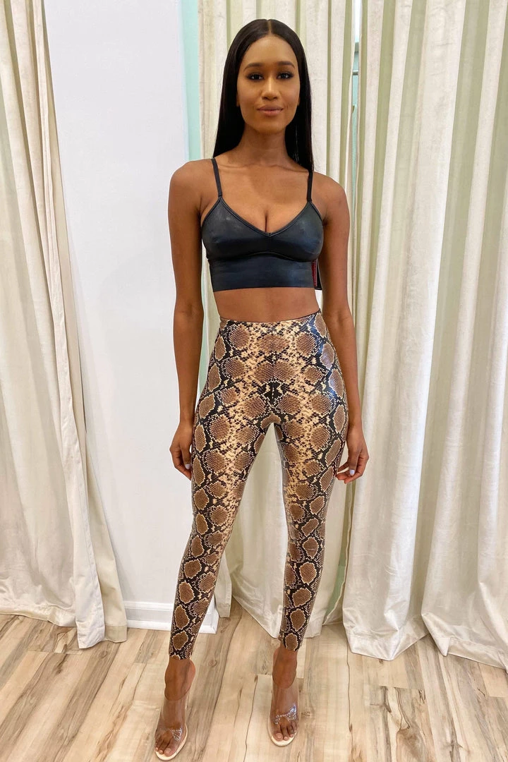 Our best selling faux leather leggings get updated with on-trend animal print. Made with a four-way stretch animal-printed faux leather and featuring commando’s signature internal waistband.
