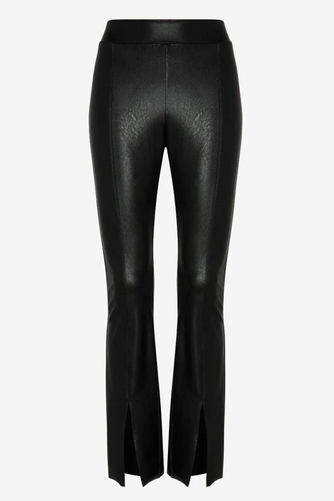 Give your look a dose of cool with the Faux Leather Split Front Pant. With a real-leather look and feel, this sleek style has four-way stretch and incredible recovery for a flattering fit every time. Finished with seam details and an on-trend split front hem.