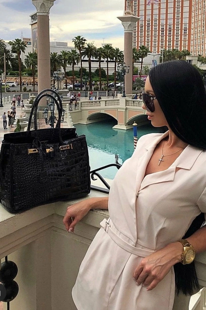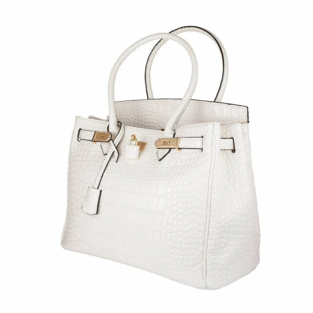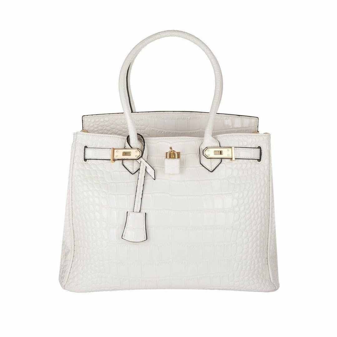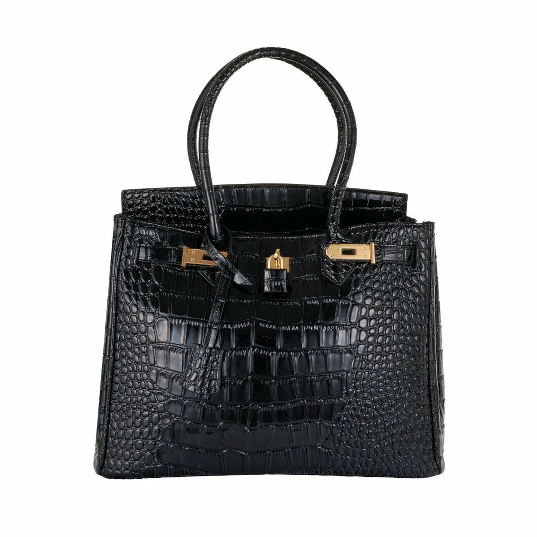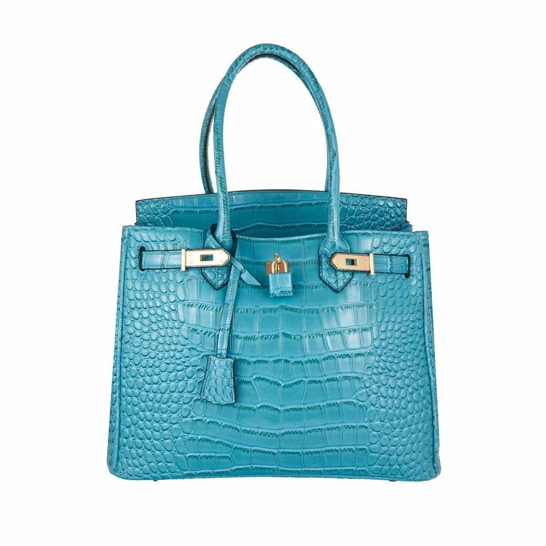This Vegan croc is sure to turn heads while allowing for both functionality, as well as comfort and glam factors. The accessories feature an easy pull on / off coated lock, anti-tarnish gold hardware, a key holder for added style bonus and 2 pockets inside.
