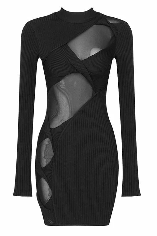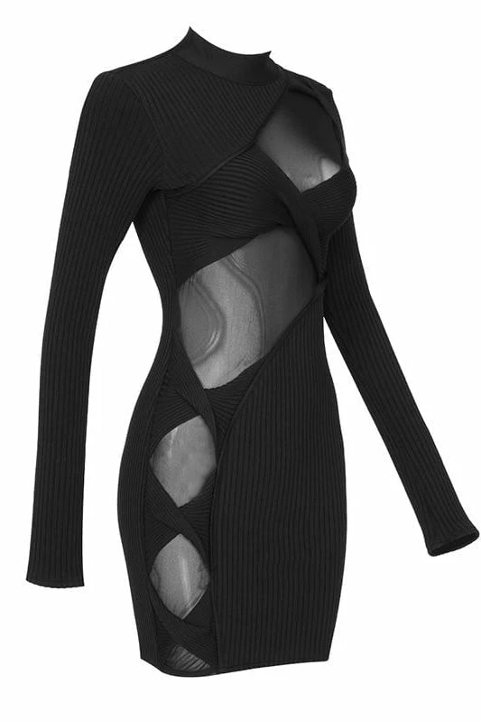 This little black dress is a party staple piece! Featuring long sleeves, cut-outs along the mid-center and side, and a mini length. Pair with a sparkly mini back and statement earrings to be party perfect!