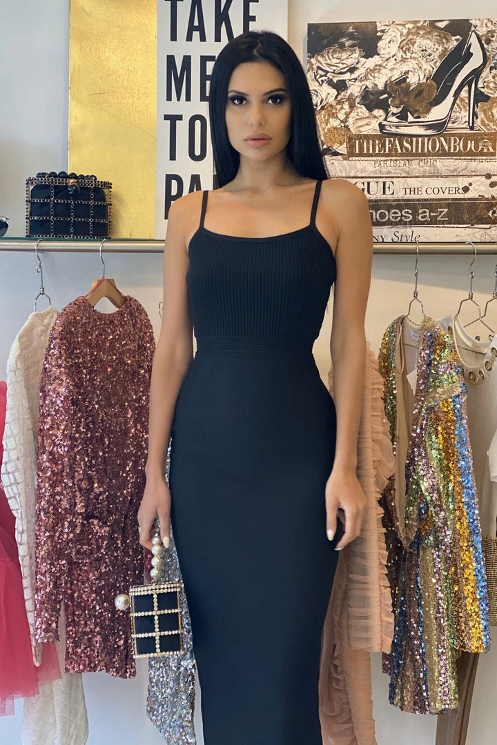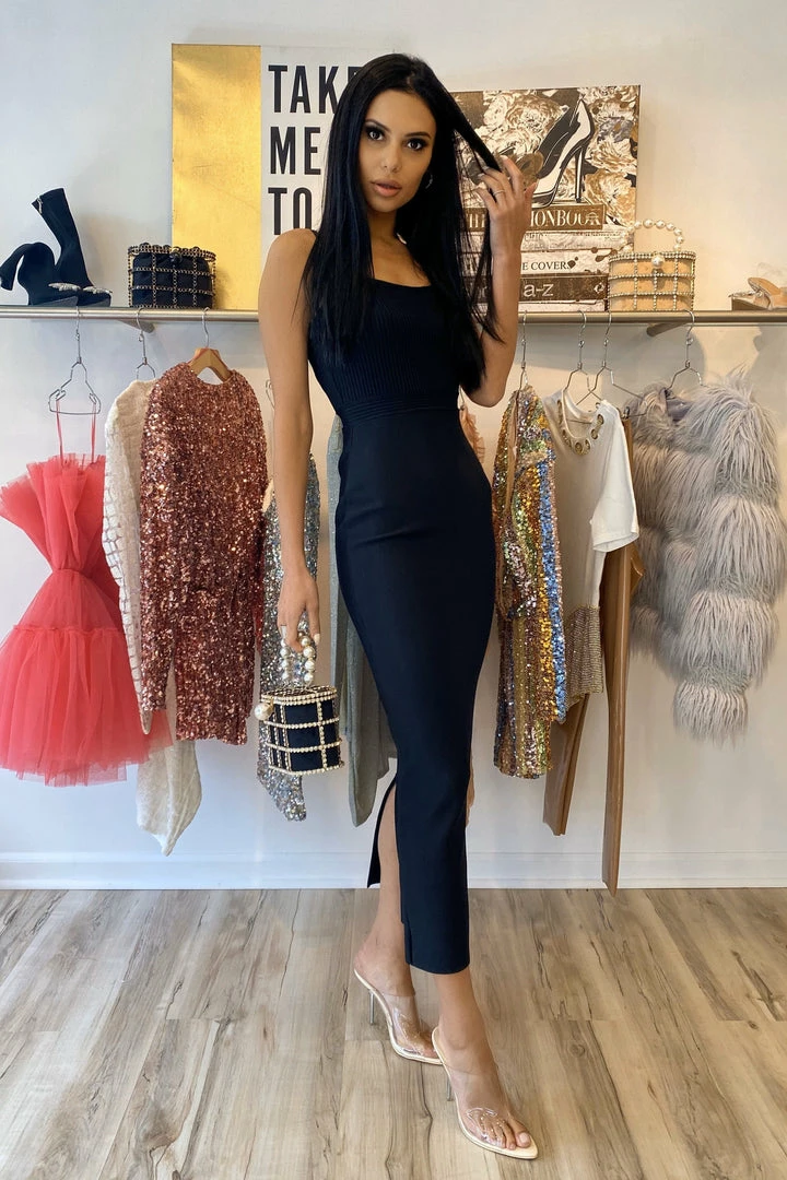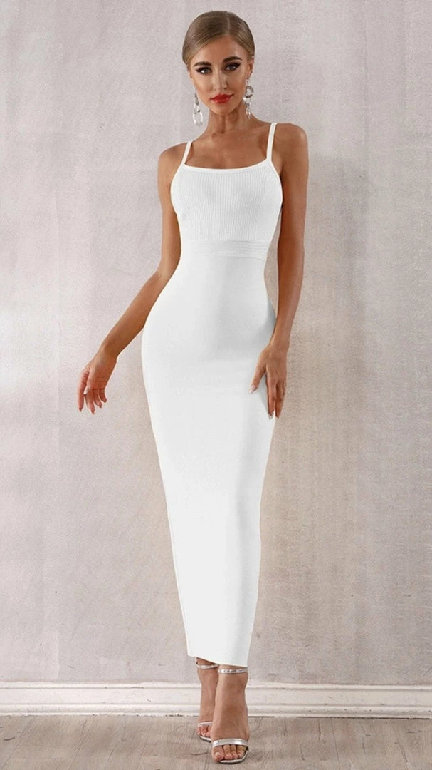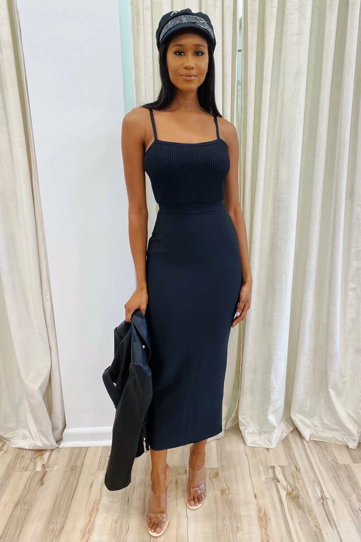 Babe, you will get all of the right looks in this body loving midi! Featuring a bodycon fit, spaghetti straps, ankle-length style, and back zipper.