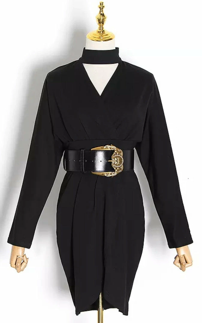 Get back to basics and curate an effortless wardrobe edit that SLAYS everytime with the LBD. Featuring a choker detail, draped detaling, long sleeves, belted waist and mini length.