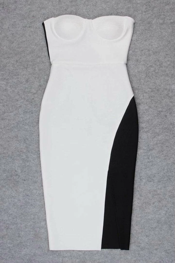 This stunning midi dress features a bustier top with a defined waist, a deep side slit, and black detailing to highlight every Reve Doll’s curves. Pair with simple black or white heels and chunky necklace to finish the look!
