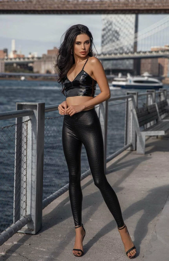 Our longline bralette is perfectly shaped for all-day support and made from raw-cut, smoothing faux patent leather to keep your look seamless.
