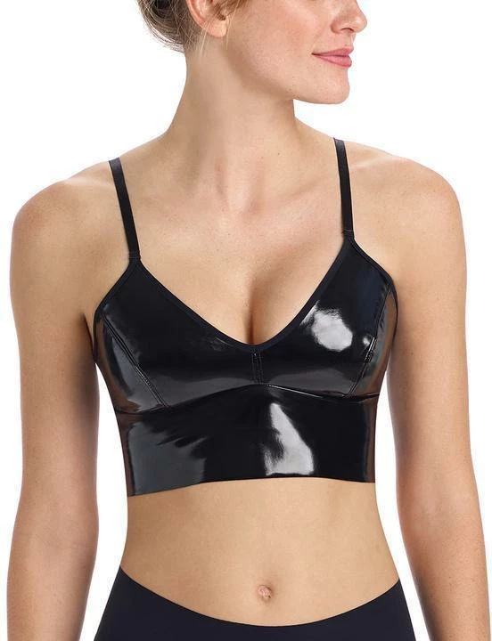 Our longline bralette is perfectly shaped for all-day support and made from raw-cut, smoothing faux patent leather to keep your look seamless.