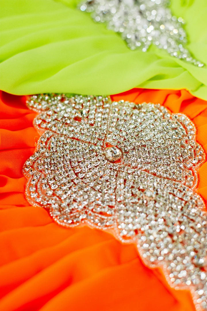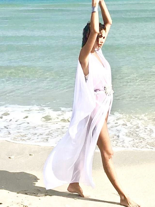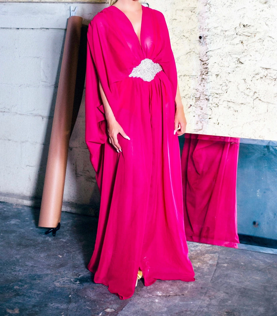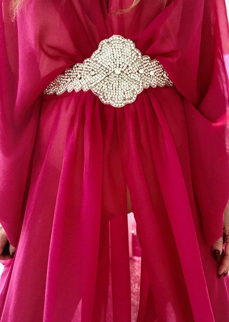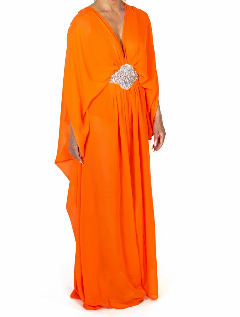 Chiffon kaftan white crystal embellishment as seen on Ashanti and Lisa Hochstein.
