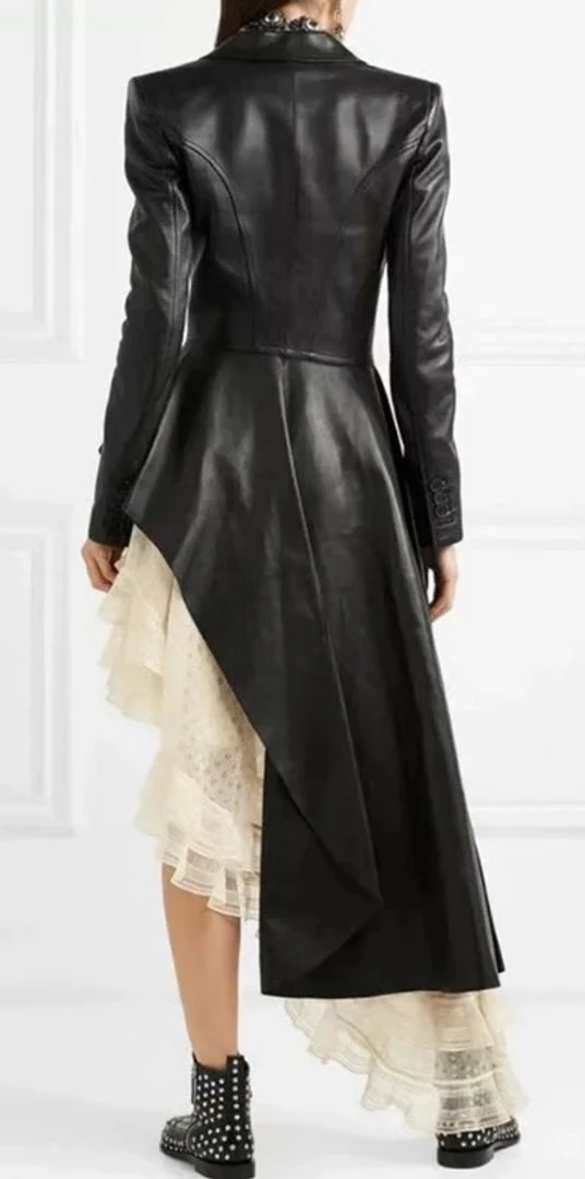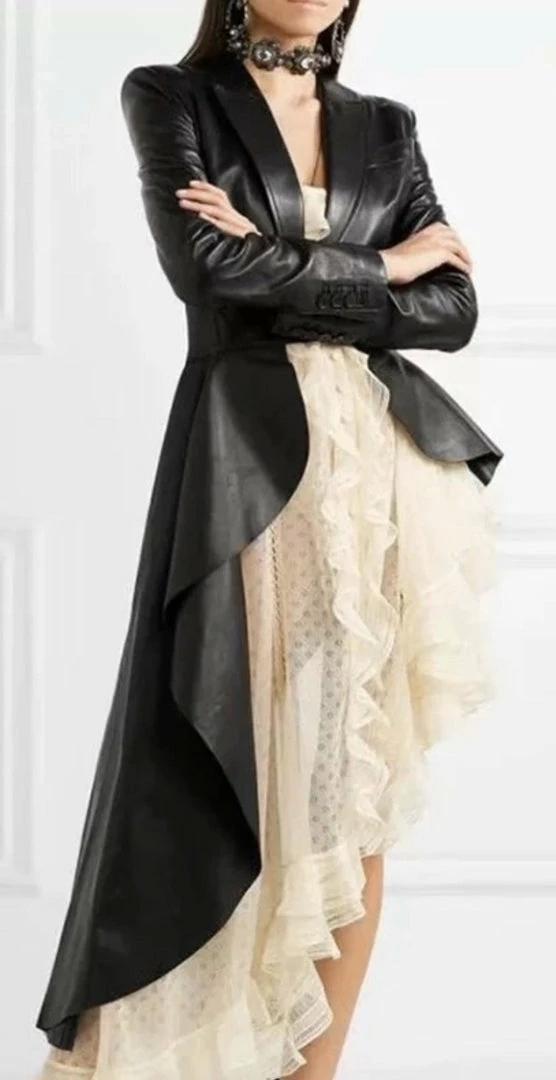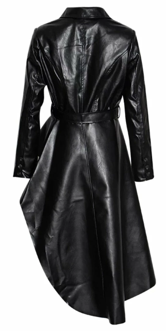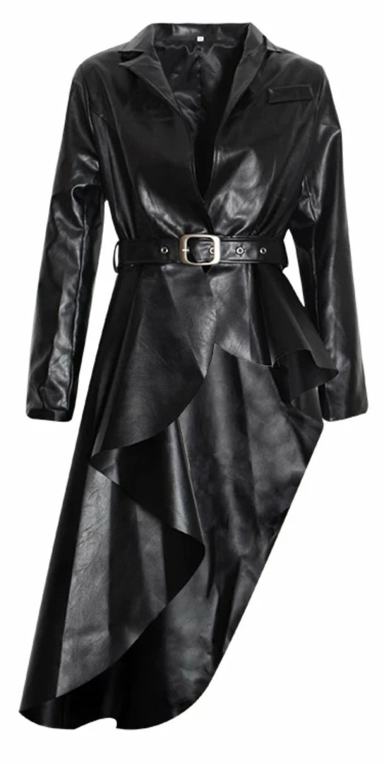 Give your look some fierce vibes with this faux leather jacket. Featuring a trendy asymmetrical cut, belted waist, and long sleeves. Pair with black bottoms and leather ankle booties to complete the look.