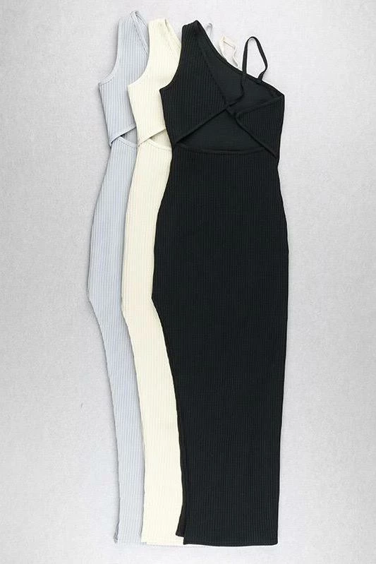 Our favorite dress of the season features a bandage material, a bodycon fit, thin straps, an open cut out back design, and a leg slit. Pair with ankle strap heels or chunky sneakers and a leather jacket for a fall look that we’re “fall”ing in love with.