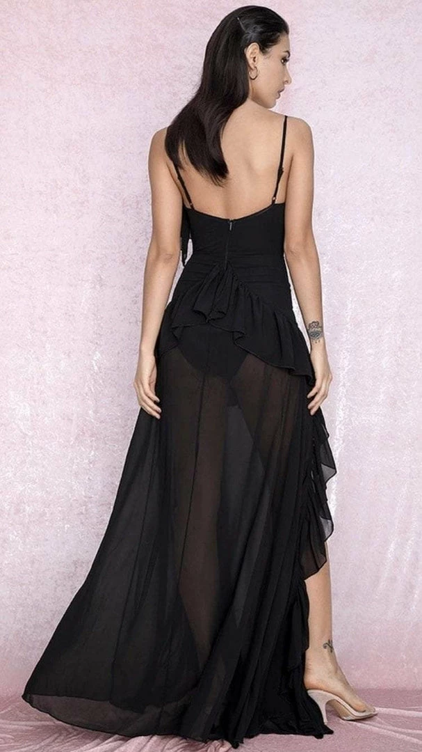 Elevate your vacation look with this dreamy maxi dress. Featuring lace and ruffle details, two slits on each leg, and a floor length. Pair this with lace-up sandals for a stylish and feminine look.