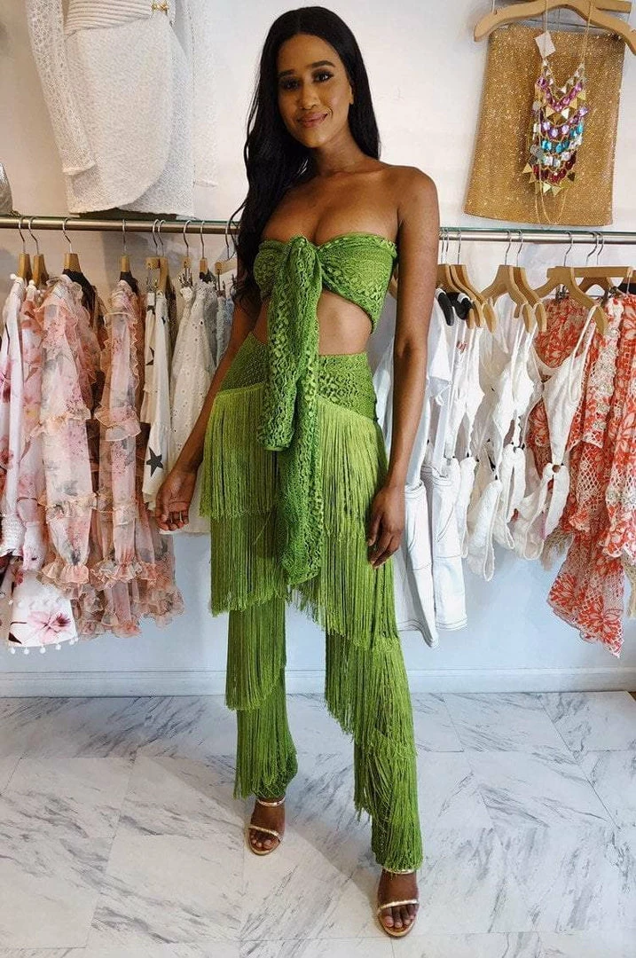 SKU: jessica-bara-4604210446426 Categories: Collections, Influencer Style, Stylist Picks Tags: Black two piece, Green two piece, Lace two piece, Summer two piece, Tassel two piece, White two piece