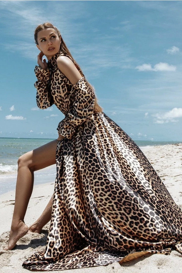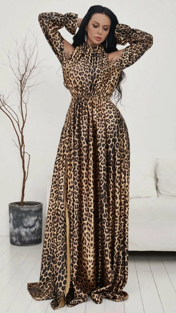 Influencer Style Jessica Bara Kaylana Leopard High Neck Maxi Dress