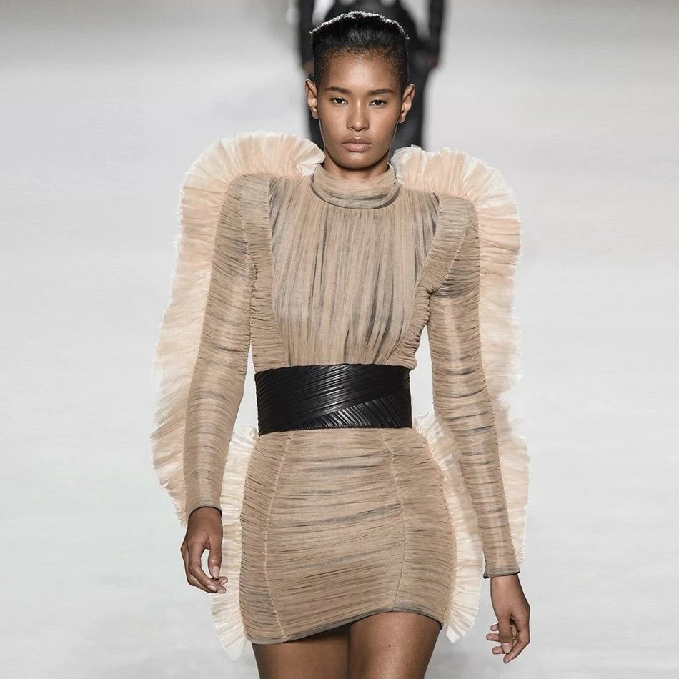 Look like your on the runway in this Jessica Bara Keke Lace Long Sleeve Dress. Made with Polyester and Spandex. Has a sheath silhouette. Above Knee length.