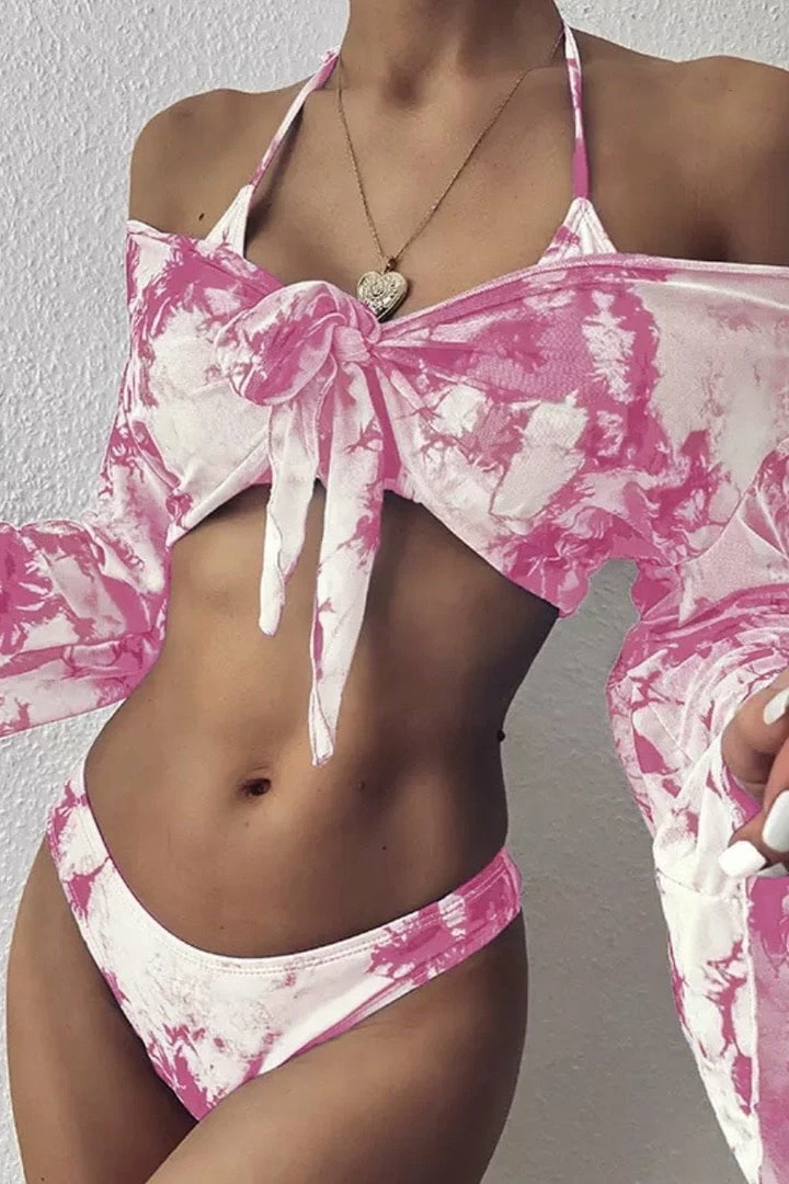 This ultra cute bikini set includes a tie dye printed top, bottom, and top!