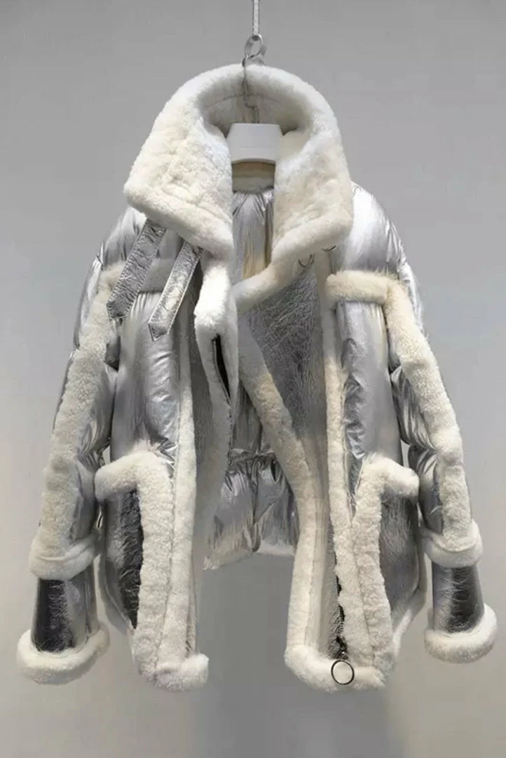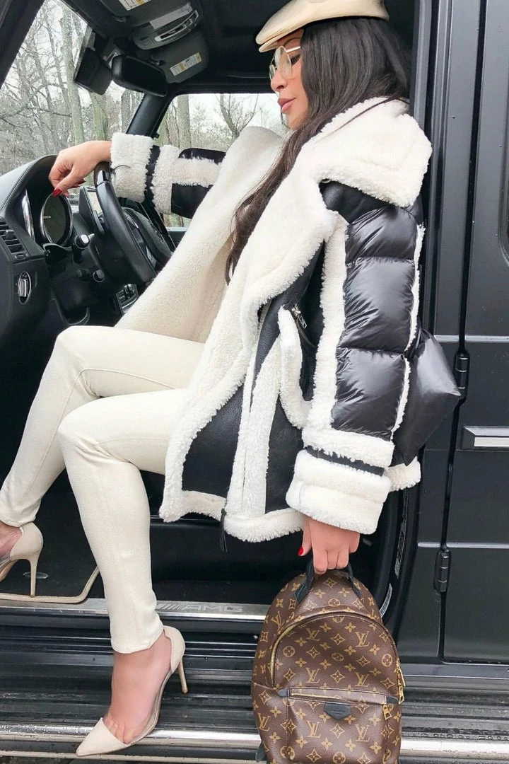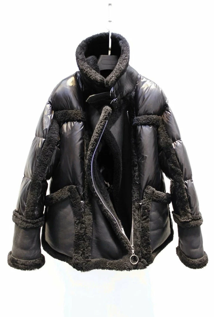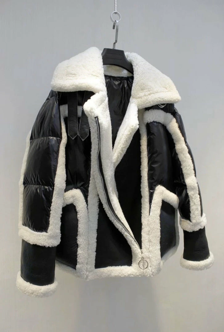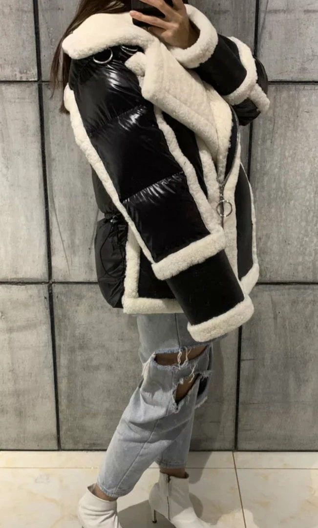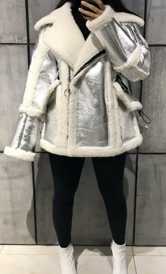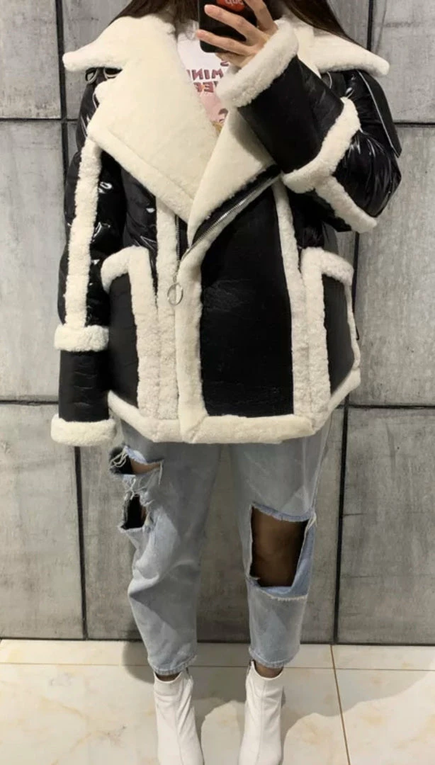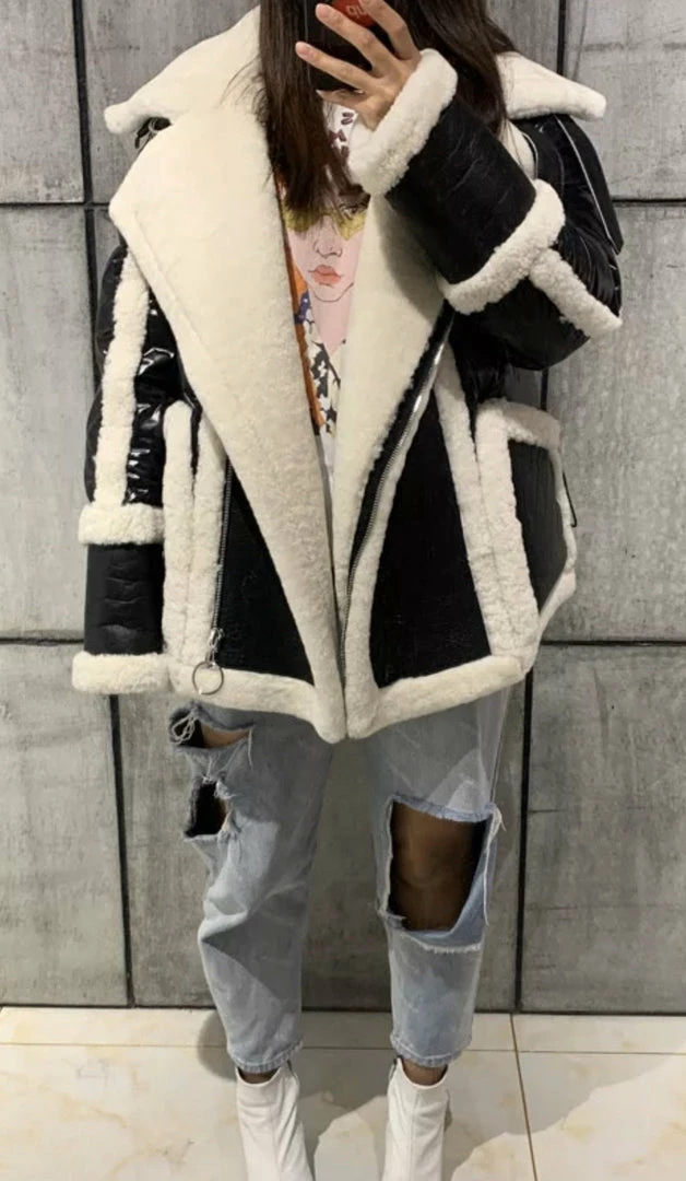 We are seriously crushing over this must-have coat for the upcoming season! Featuring a sheepskin, wool, and leather material, turn-down collar, pockets, zipper closure, and an oversized fit. Style this over any fall/winter ensemble for a killer look.