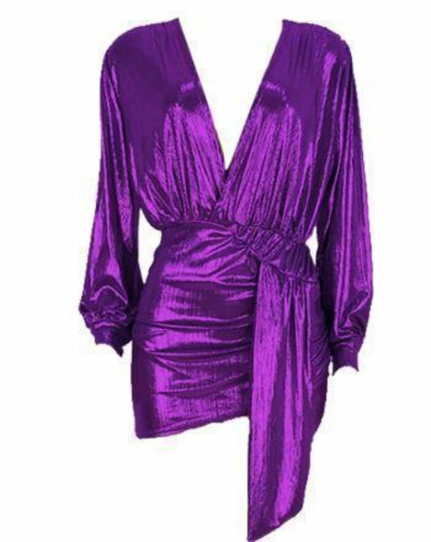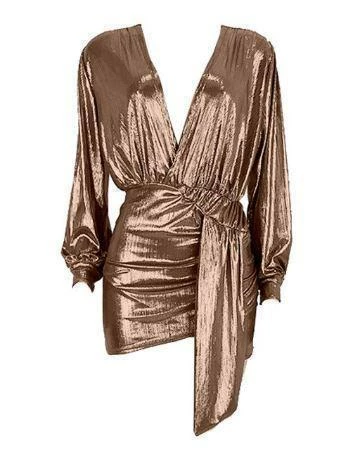 This Jessica Bara dress has a sexy deep V-Neck pleated ribbon decoration with Sparkling Fabric. The perfect “going out to a party dress!”