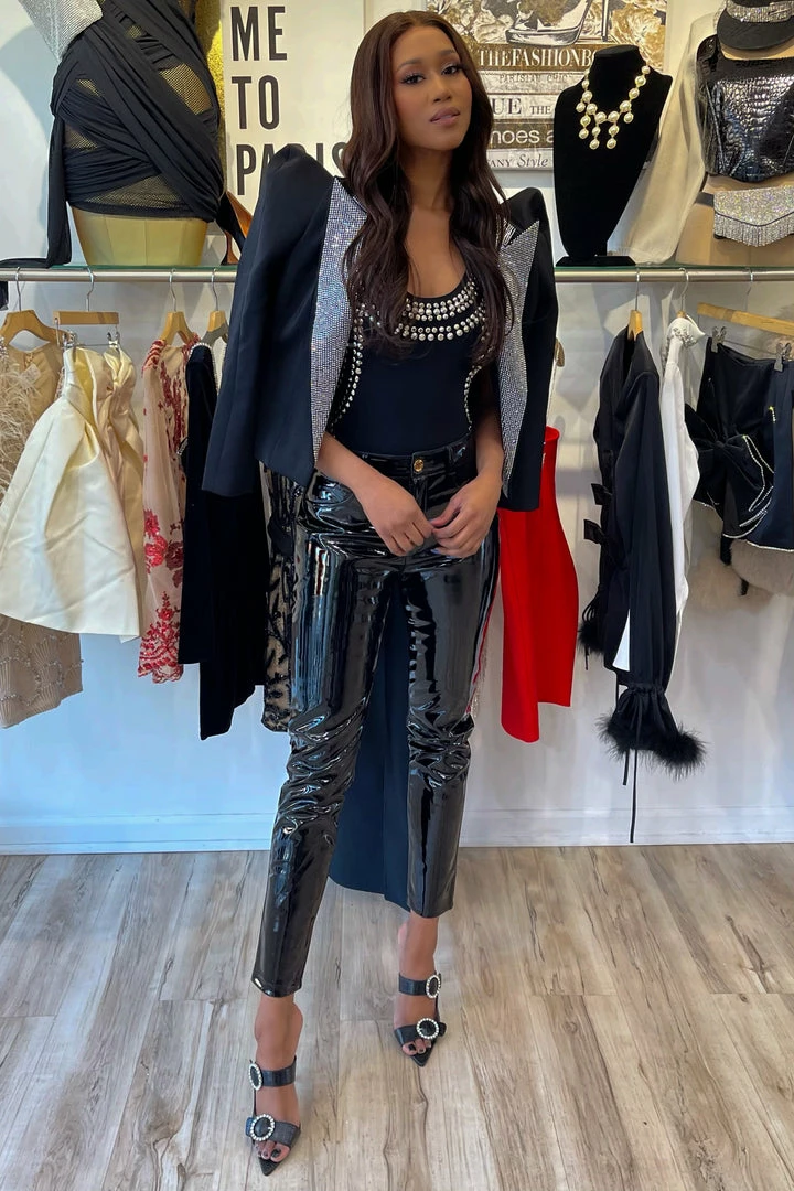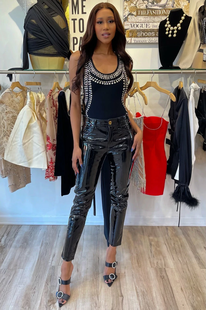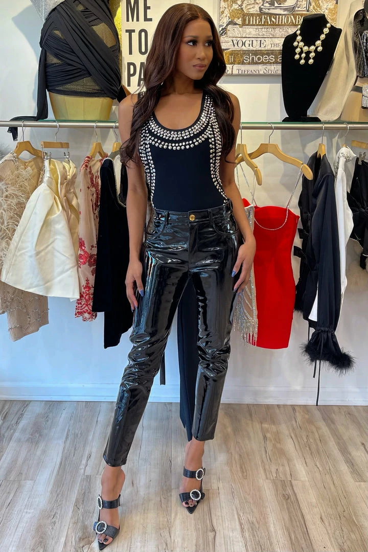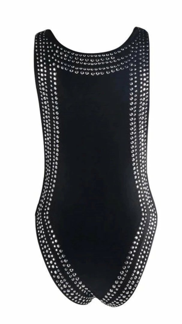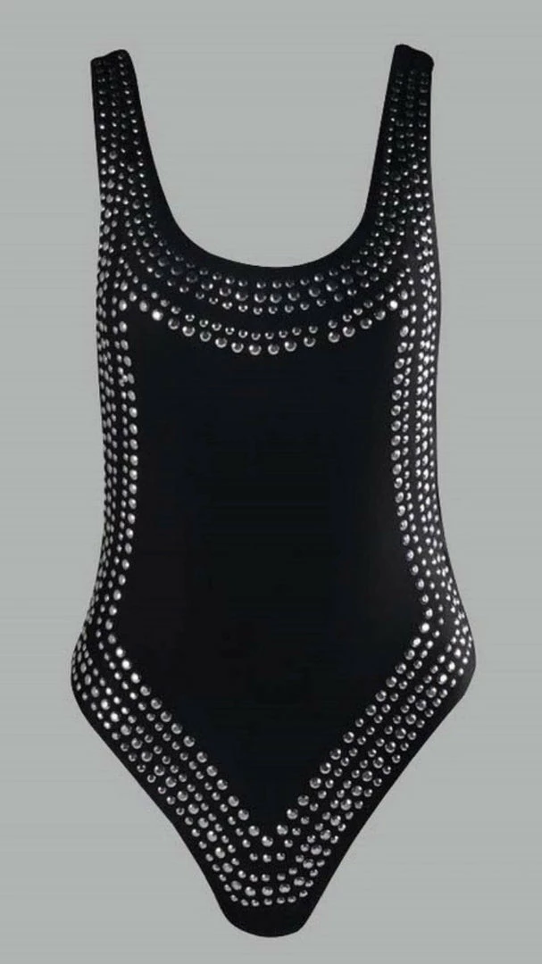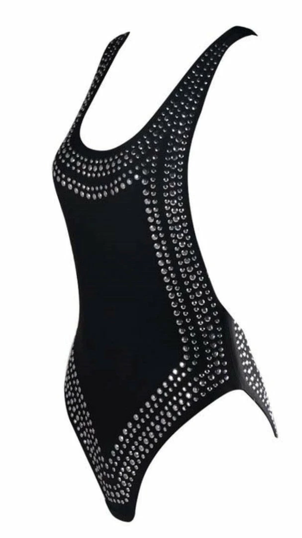 You’re guaranteed to be the center of attention when you step out in our ‘Valerie’ bodysuit. Featuring rhinestone embellishments and deep side cut-outs. Can be worn as a bodysuit or swimsuit. Style yours with a golden smokey eye and stilettos!