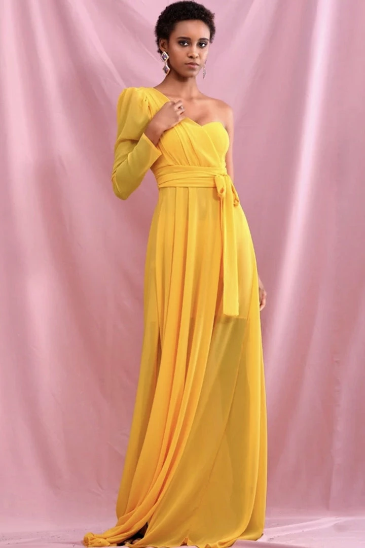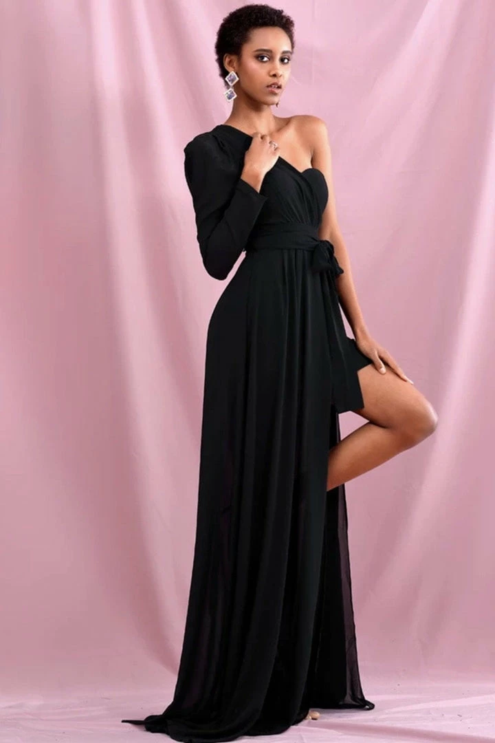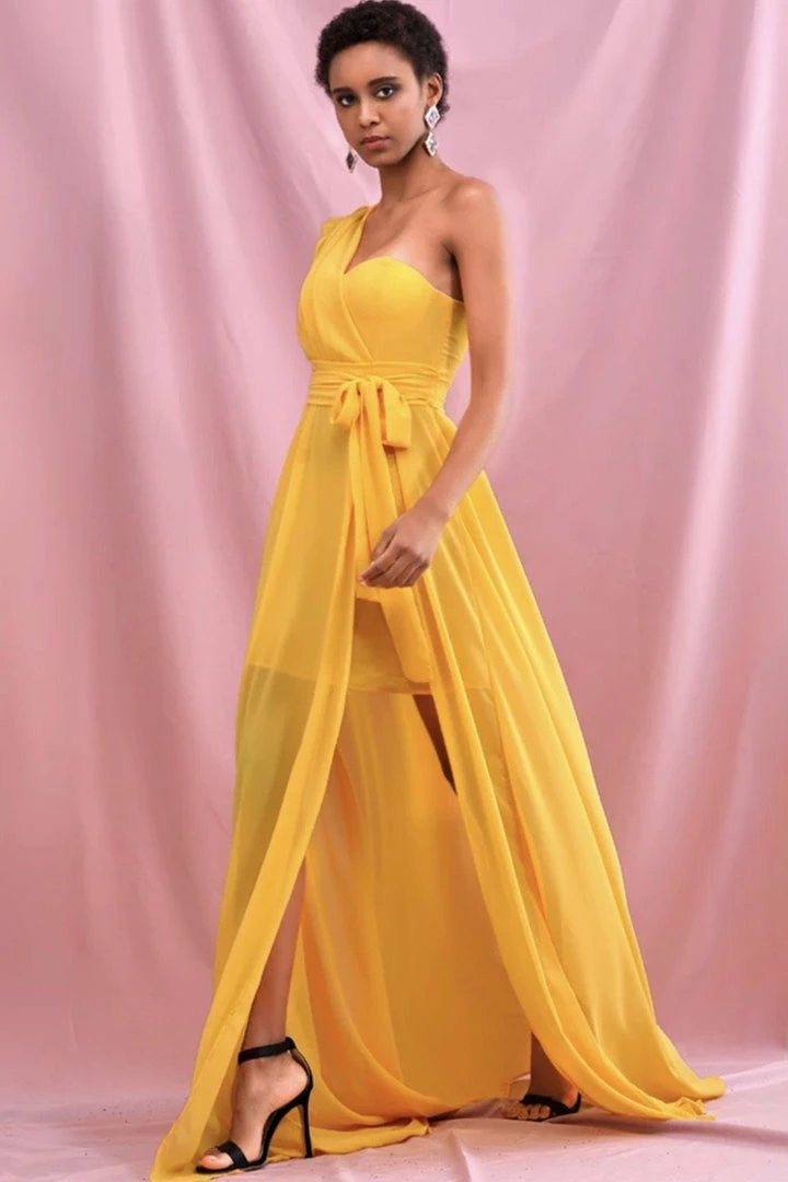 Jessica Bara Adrianna One Shoulder Belted Maxi Dress Summer Lovin’
