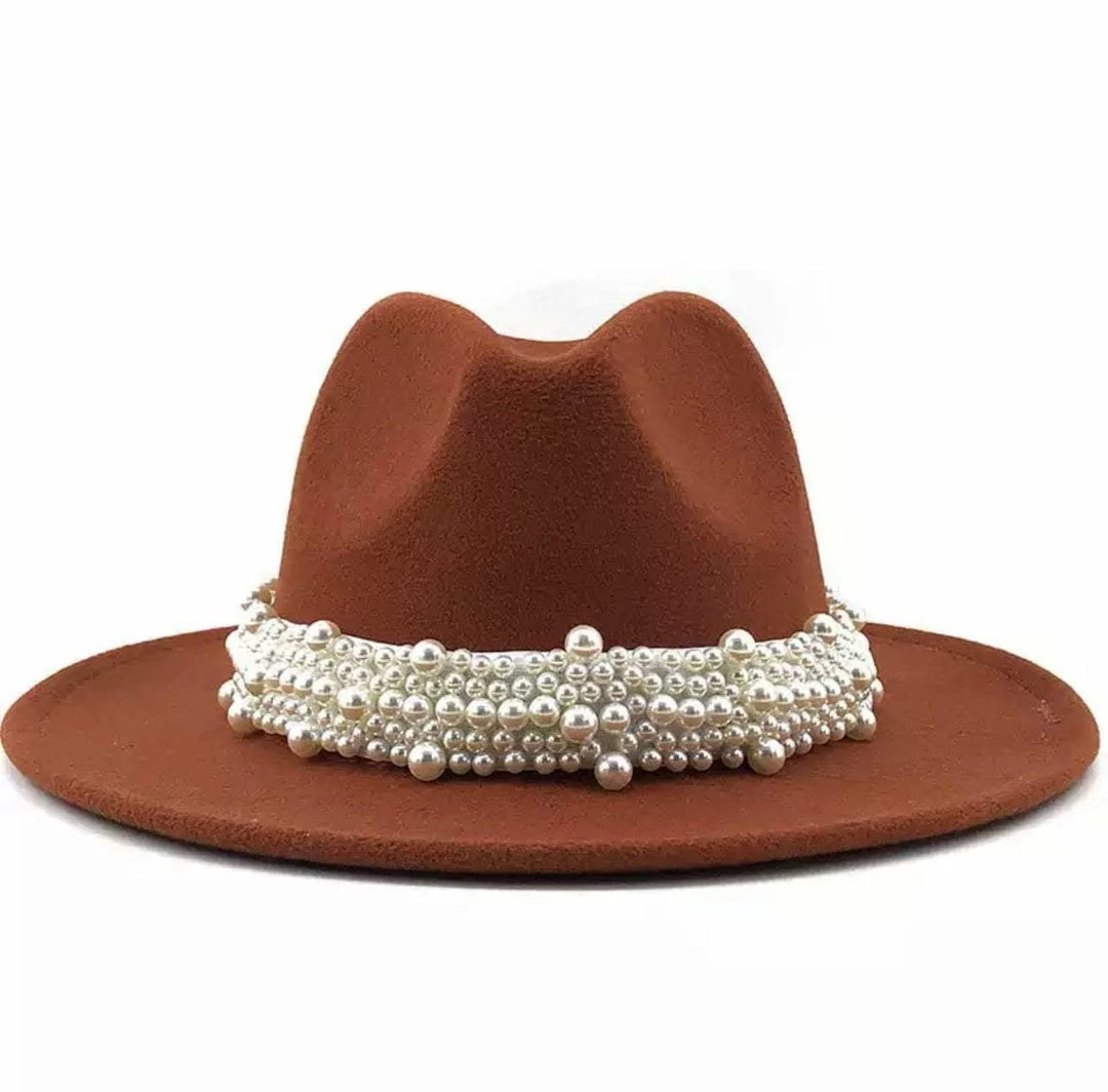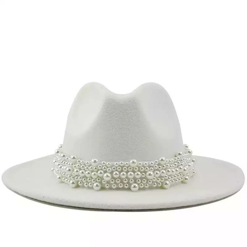 Add this hat to any look this season to take your look to the next level! Featuring a wool felt material, a multilayered detachable pearl band, and a short brim design. Perfect for brunch and shopping with the dolls on a hot summer day!