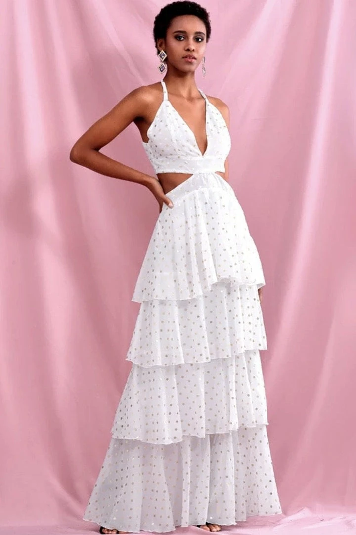 This killer maxi dress is sure to take you from 0-100 doll! Featuring a polka dot material, cut-out and ruffle details, a v-neck style, and a maxi length. Team this with heels and statement earrings for a look that’s sure to steal some stares.