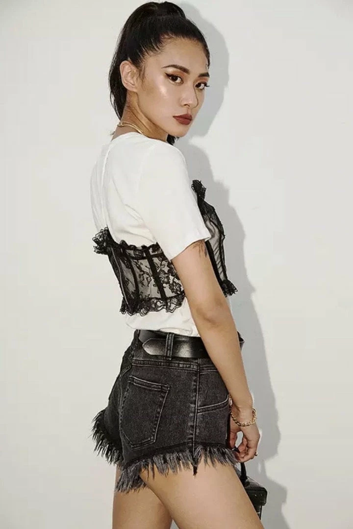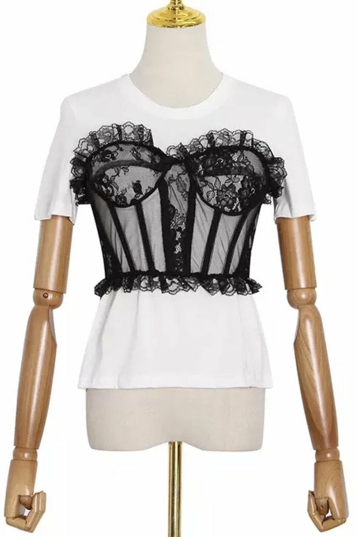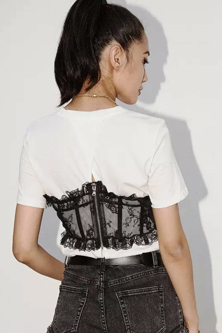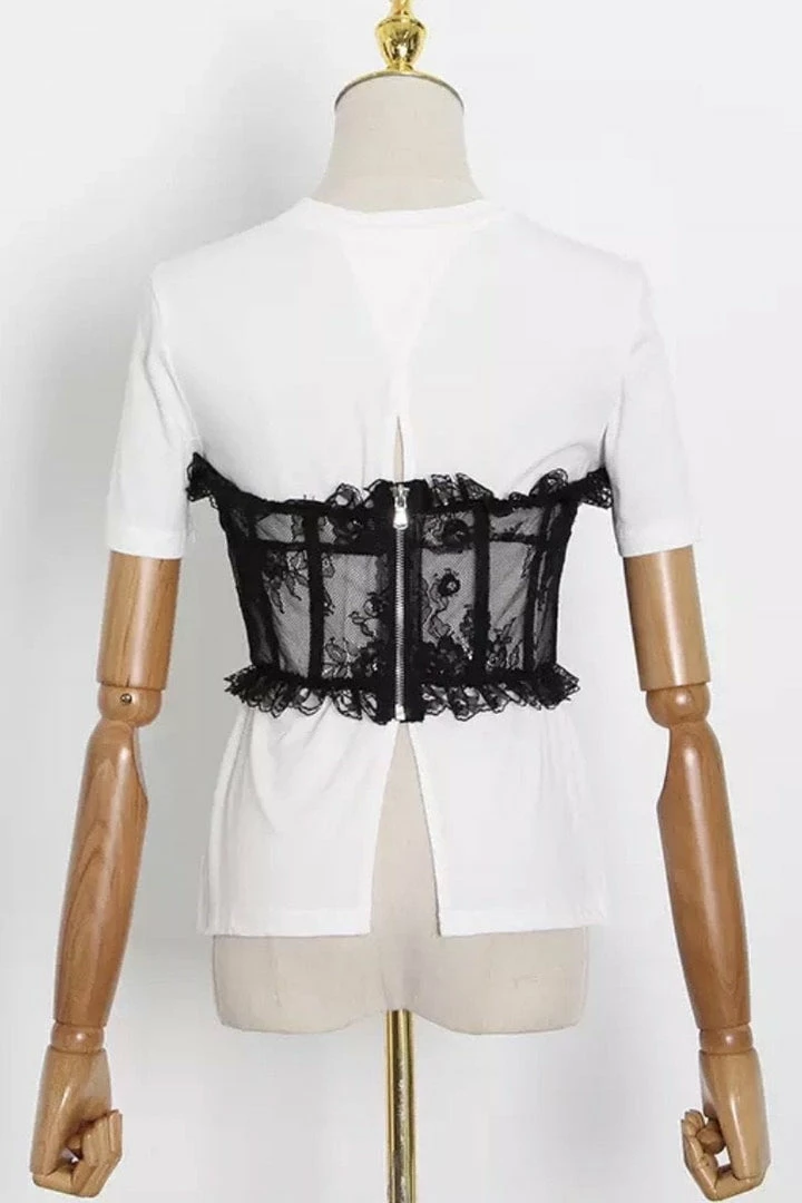 Jessica Bara Asher Corset Lace Short Sleeve Top Tops