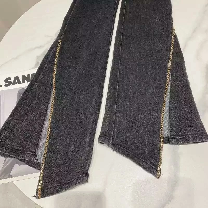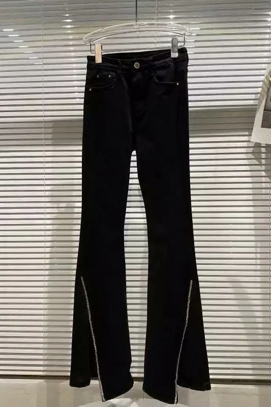 Hit refresh on your jean wardrobe! This pair features a high waisted fit, a straight leg cut that flares at the end, and split leg pants with chain detailing. From daytime errands to the bar with the dolls, these jeans can follow you anywhere!