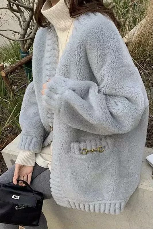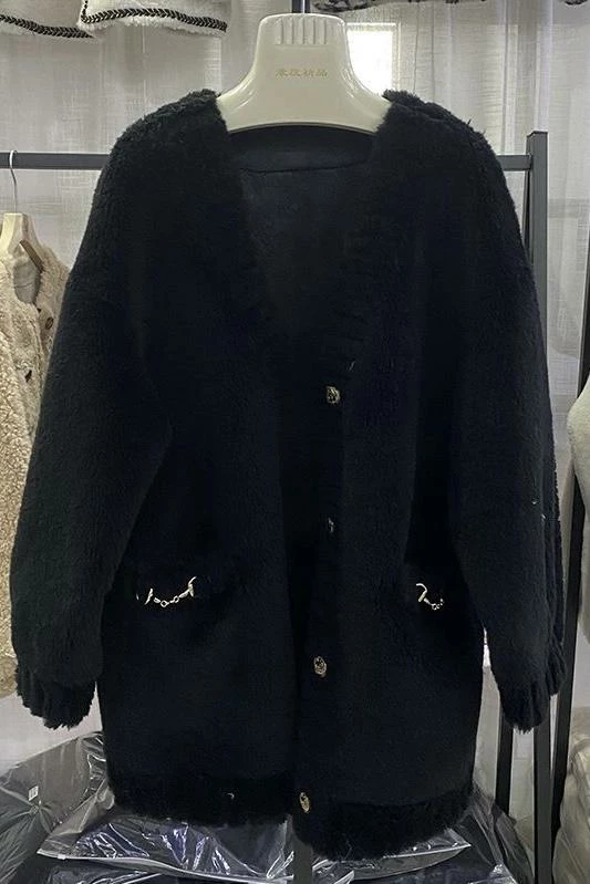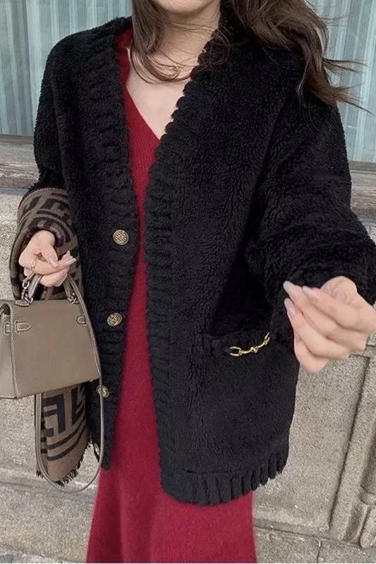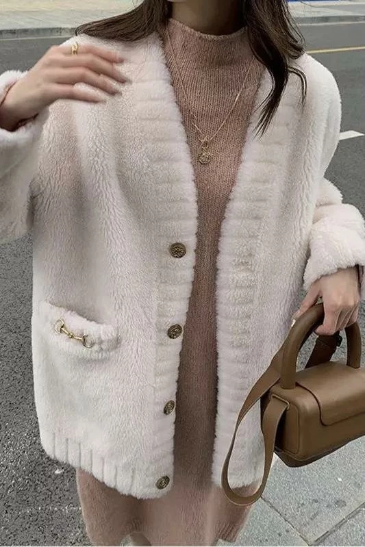 Keep cozy in the cutest way possible. This jacket features a fuzzy fur material, gold button hardware, and two pockets. Throw over any outfit this season for a look we’re loving!