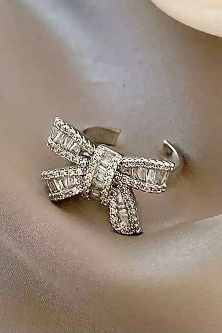 Accessorize to perfection! This silver ring features a fully rhinestone bow design. Pair with other silver rings and a fresh manicure to easily amp up your outfits this season.