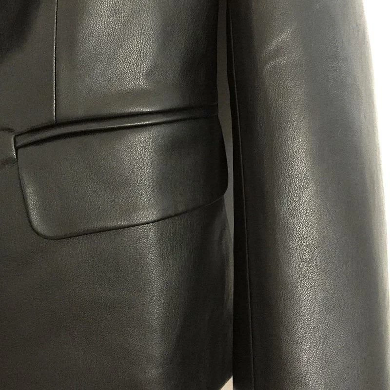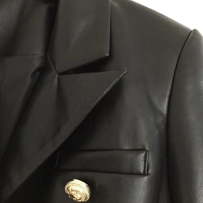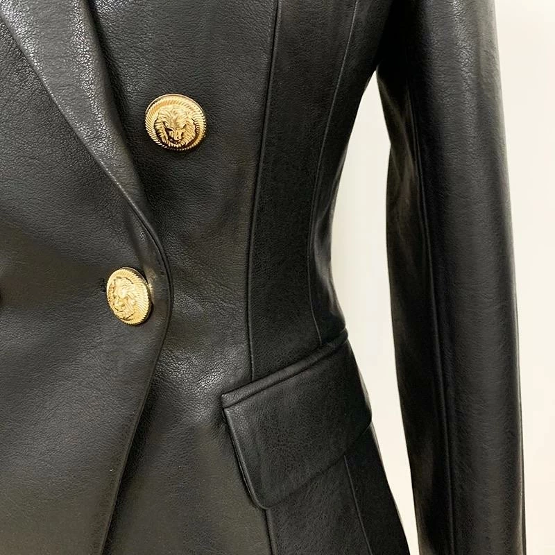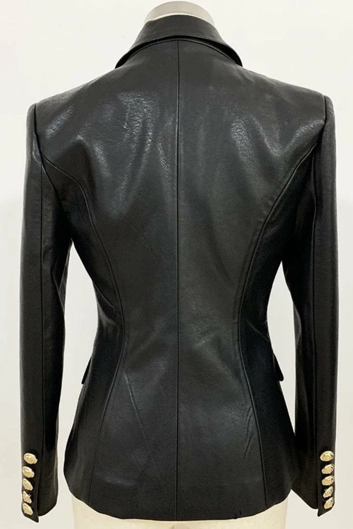 Turn heads from the AM to the PM in our ‘Bonnie’ Blazer. This super cute style features a black color, faux leather, cotton blend polyester material, and a double breasted style.