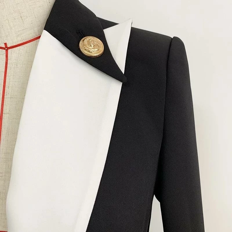 Nail the color contrast trend with this stunning blazer! Featuring gold button embellishments, single breasted, pockets, and long sleeves. Can be dressed up or down!