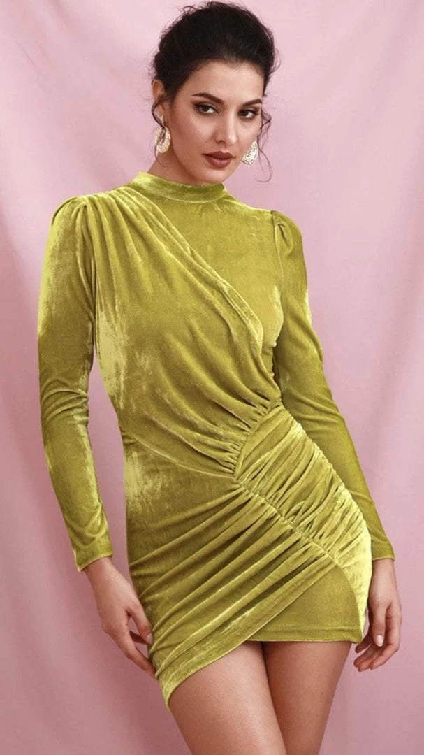 Update your party dress collection with this fierce style doll. Featuring a velvet material with a ruched front and high neck style. Team it with some strappy heels and a mini bag for a night out!