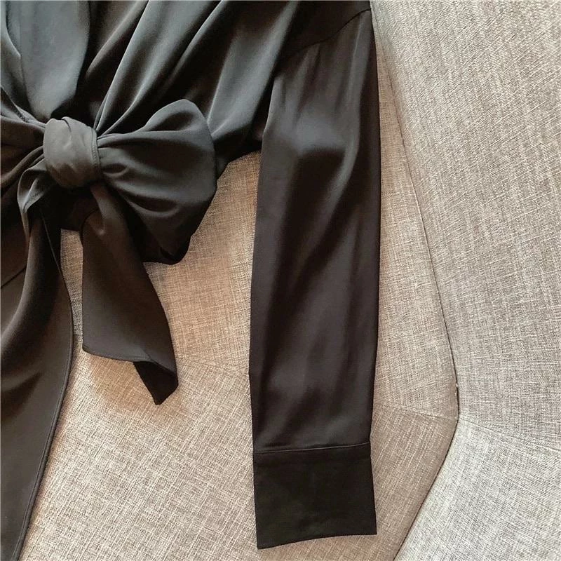Look super cute at your next date night with this stunning top! Featuring long sleeves, deep v-neck, bowknot detail, and cropped length. Pair with jeans and booties for a look we’re loving.