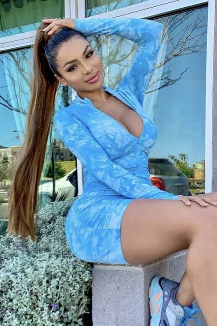 Look like an absolute style queen in this romper! Featuring a tie dye printed material, long sleeves, zipper closure, high neckline, and ruched detailing.