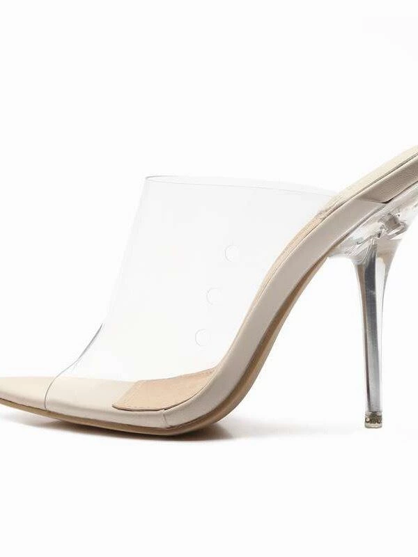 Clear heels are a staple to be on trend this season. Featuring a nude color and pointed front.