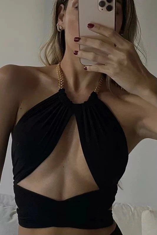 Jessica Bara Cheyenne Chain Strappy Halter Top