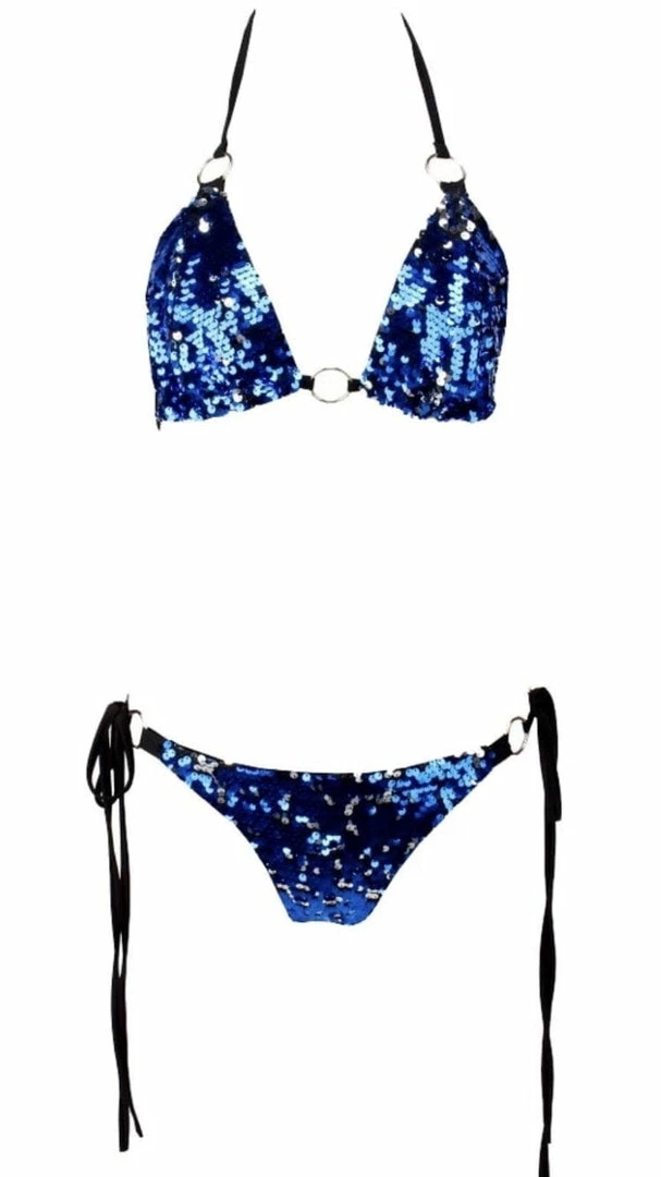 Love the glam of this ‘Cindy’ set. Including sequins all over, adjustable side strings, and a matching top and bottom.