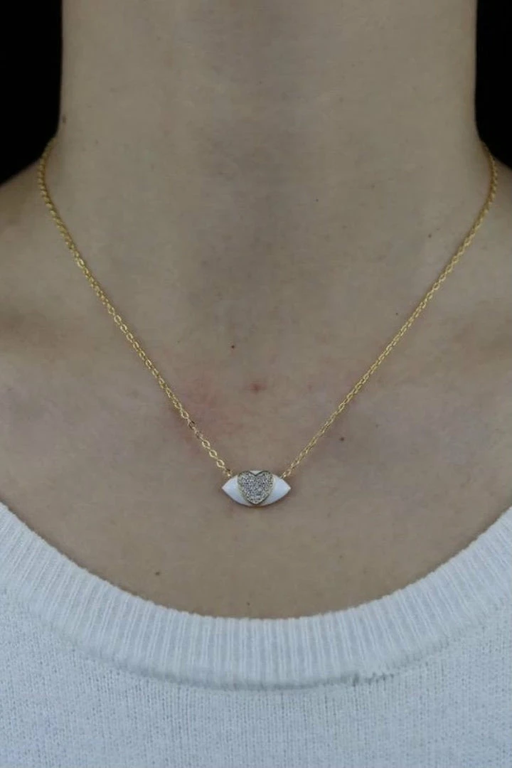 This dainty features a heart centered in an evil-eye shape, on a gold chain. A perfect everyday necklace, you’ll be sure to add detail to every outfit with the Clarissa!